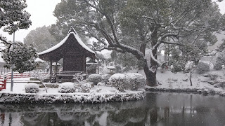 說回天滿宮,雖然下著雪,遊客都算多,建築物舖著白雪,真的別有一番風味,不過突然間雪愈下愈大,又沒有拿雨傘,繞過一圈後,都快步走回表參道有上蓋的地方了。原來下了雪的地下都挺滑的,試過有時走路會差點絆倒,所以真的要小心走。