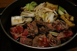晚餐是走到邊就吃到邊,通常不會預先計劃,除非想吃某間名店。友人推介不如到京都站前一個商場食壽喜燒放題,當然讚好啦!查閱好市巴士路線,搭至京都站前下車,約 5 分鐘路程即到達「京都 ヨドバシ 商場」,樓高 6 層有時裝、電器、購物、餐飲等店舖,當中 6 樓齊集多家特色食肆,日本菜、洋食、中式、美式等兼備,當晚的目標就是「但馬屋」,後來知道原來這家店在京阪地區擁有很多分店,連台北都有海外店。有趣的是在日本食放題,男女是以不同價格計算的,以我們選擇的壽喜燒放題套餐,男生價格是 2,580yen,而女生價格是 2,380yen,外加飲料放題 (ソフトドリンクバー) 840yen 一位,牛肉、雞肉、豚肉均可無限追加,另外以自助形式可選擇多款野菜配料,丸類等,還有甜品,雪糕是必吃的啦。所謂壽喜燒 (すき焼) 和 Shabu-Shabu (しゃぶしゃぶ) 又有甚麼不同?根據我們非正式的分類方法,Shabu-Shabu 可以理解為火鍋了,壽喜燒不像火鍋一樣多湯,而是逐少逐少到倒入醬料 (湯),只需剛剛蓋到肉類的面即可,以煮的方式煮熟食物,也有稱是「醬汁火鍋」了。肉類的質素依價錢提供不同等級,我們選的是一般牛肉,但質素總的說來也不錯,熟後從鍋中夾起來,點上生雞蛋,在香港很難吃到這種滋味吧!