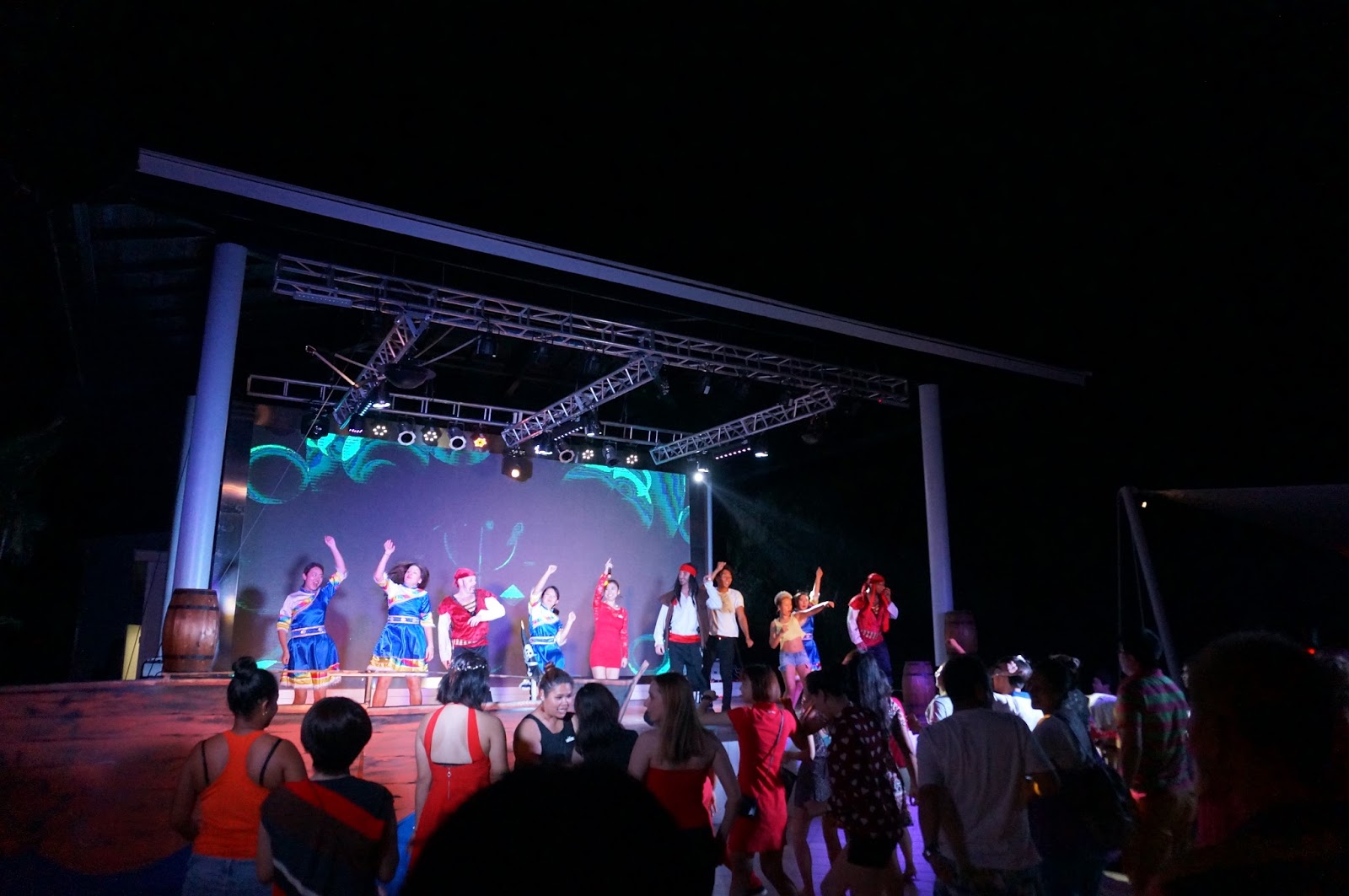 每晚Club Med都會安排一個晚間綜藝Show,表演者又係G.O.,相當勁!而且個Show都算幾好睇,完Show後又會邀請大家一齊跳舞狂歡,仲有次跳跳跳,跳到落沙灘添,真係好癲,講緊係啲G.O.真係玩得好癲。