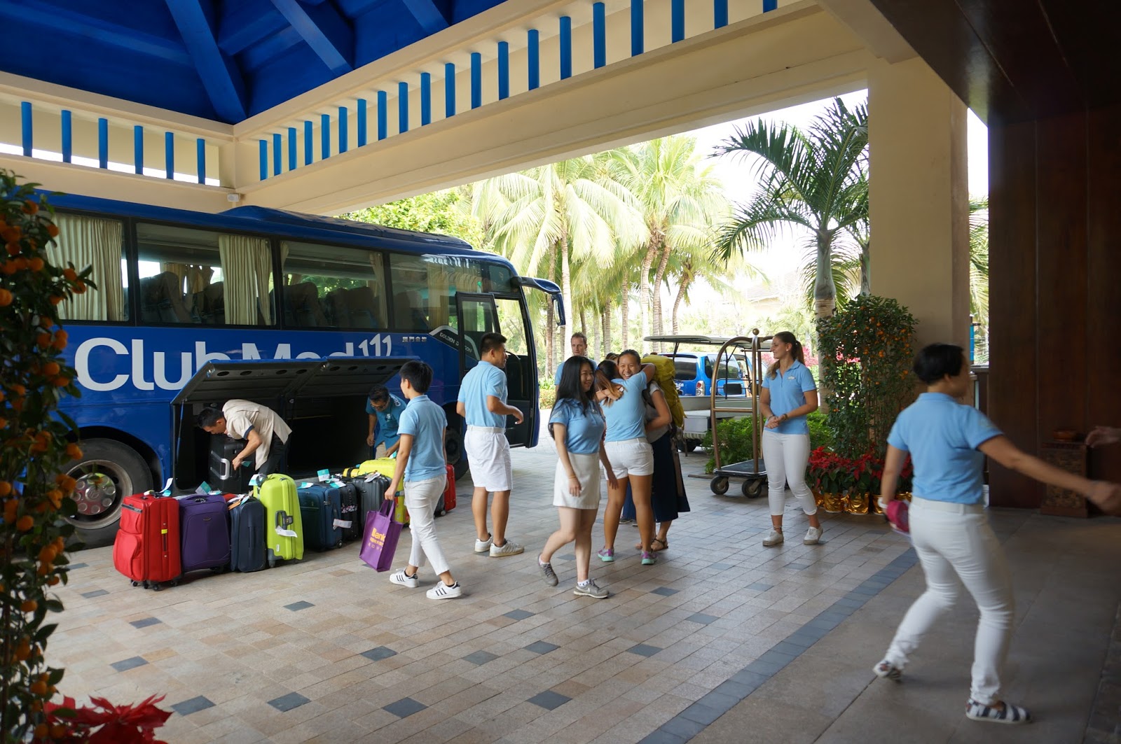 然後就坐十幾分鐘車去Club Med啦,差唔多到嘅時候,離遠就見到好多人著住制服列隊歡迎啦。佢哋就係G.O,我諗呢個稱呼係Club Med獨有嘅,即係(Gentle Organizer),G.O.係Club Med嘅其中一個文化,佢哋唔係一個職員,您可以當佢哋係朋友,佢哋喺度假村內亦有好多角色,會協助度假村內唔同活動,作為導師,晚上又會變成表演者!