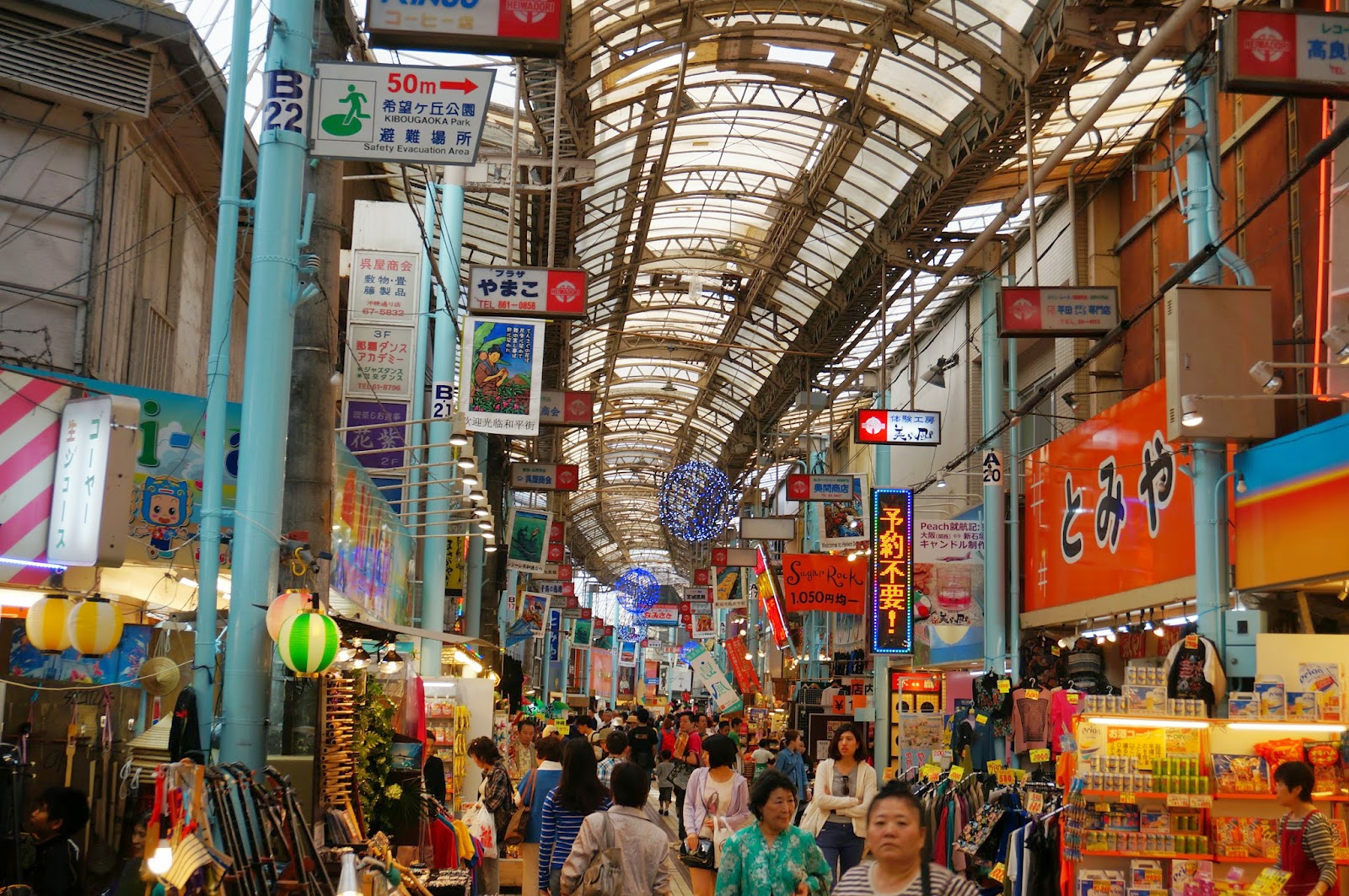 然後往國際通出發,國際通是那霸的「旺角」,是那霸市最繁華的地段,齊集了商店、食肆、土產店、三越百貨等,是遊客血拼必到景點,亦有奇蹟一公里之稱,每逢假日會變成行人專區,氣氛也會熱鬧起來。國際通以一條直路為主,由於整條街商店所販售的物品都大同小異,如果行得悶的話也可以走到鄰近的「牧志公設市場」和「平和通購物街」,前者是菜市場,後者是較舊式的商店街,也可以體會到風土人情喔!