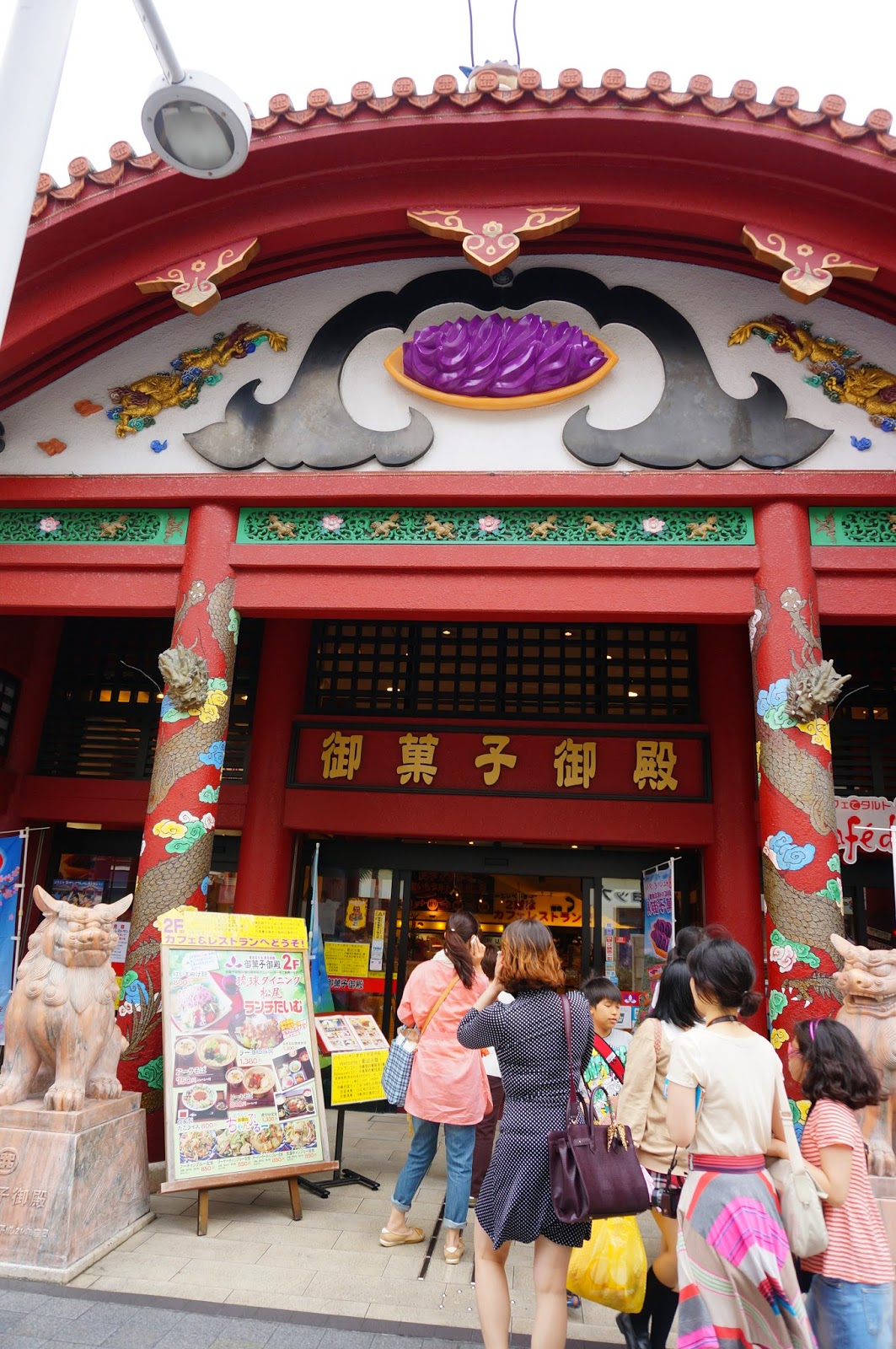 要到國際通從三個單軌列車站都可走至,包括「縣廳前站」-國際通起點;「美榮橋站」-國際通中段;「牧志站」-國際通終點。至於以下特色商店和手信也可以特別留意,包括沖繩系 T-Shirt、紅薯撻、海鹽、海鹽雪糕、雪鹽餅乾、泡盛古酒、黑糖、石獅子等。當中印象最深刻之一是食海鹽雪糕,海鹽是沖繩的名產,當中的「鹽屋」是當地有名的名店之一,除有上百種鹽的相關產品售賣,海鹽雪糕更是必試之選,一小杯如麥當勞的幼滑新地已經十分濃郁,而重點是枱面一樽樽不同味道的鹽任您隨意添加,口味更是您意想不到,例如黑芝麻鹽、柚子鹽、山葵鹽、辣椒鹽等,吃一啖又落一下鹽,確實又是奇趣的味覺體驗。至於另一間需要特別留意的是「御菓子御殿」,這裡是沖繩名產的著名品牌,皇牌產品是紅薯撻,更是在裡面看到紅薯撻的現場生產過程,所以也推薦拜訪喔!不過當日因為太早買了手信,所以很重又很累,結果提早回到酒店放下行裝稍作休息才再出發。