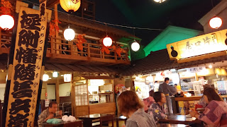大江戶溫泉物語是依據江戶時代場景設計的一個休閒場所,在台場Telecom 站有免費接駁巴士前往,到達後在前台辦理簡單手續後,會獲配一條手帶,這手帶是儲物櫃鎖匙及你的錢包。在場內消費都是用這個手帶付款,離館時一次過結算。然後會指引你前往揀選浴衣的花式及尺碼,揀好後可前往更衣,記住左疊右才是浴衣的正確穿法呢!更衣室空間很大啊,而且儲物櫃很大。更衣後就可前往公眾區域了。公眾區域挺熱鬧的,有不少枱椅讓人休憩,也有人席地而坐。有幾家餐廳供應小吃或拉麵等,也有居酒屋。另一邊是玩樂區,有夾公仔機同電子遊戲,也有類似園遊會的那種攤位遊戲可玩。裡面除了是泡澡和休息室外,餐廳和玩樂都是要另行收費的啊。