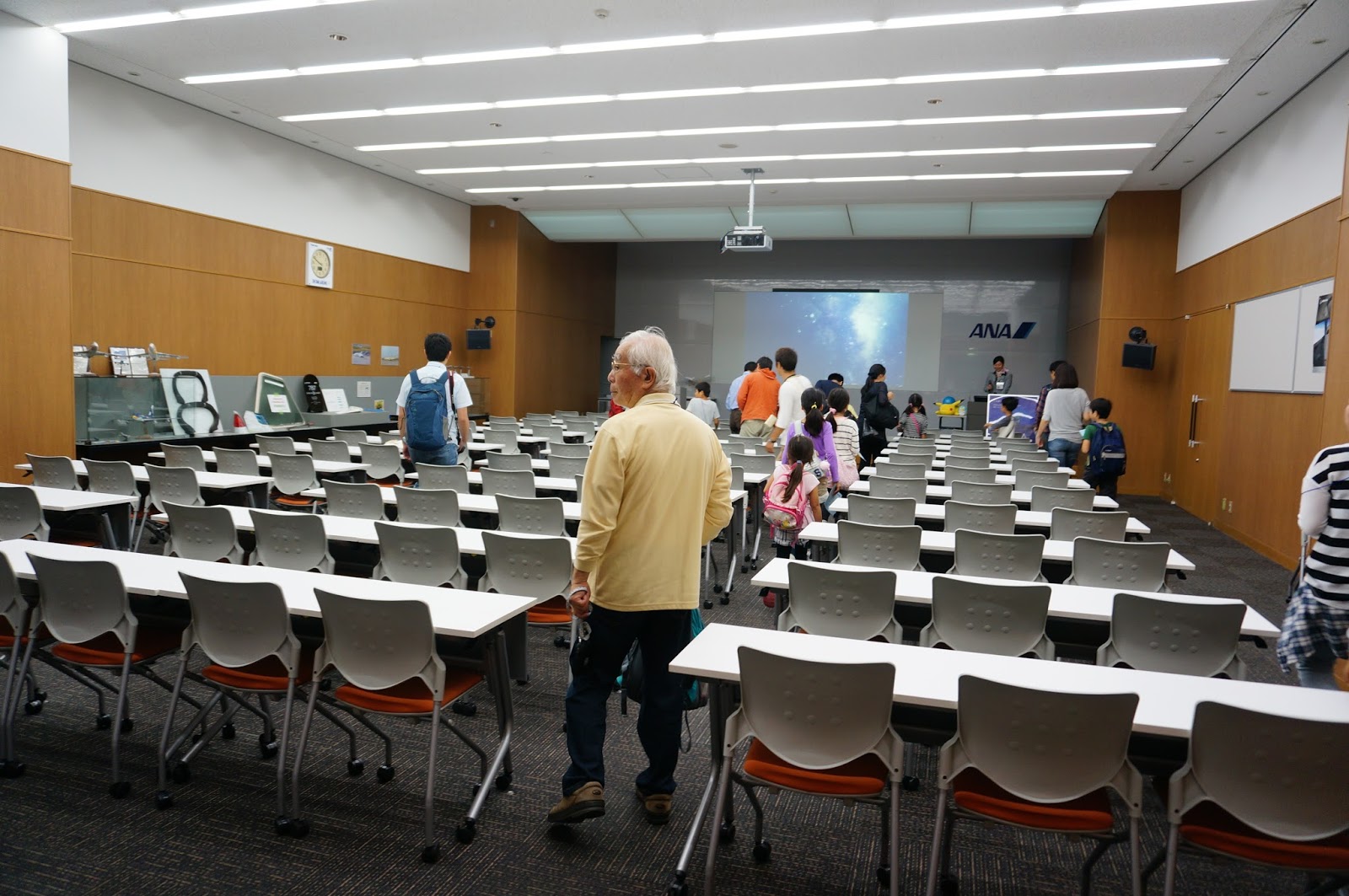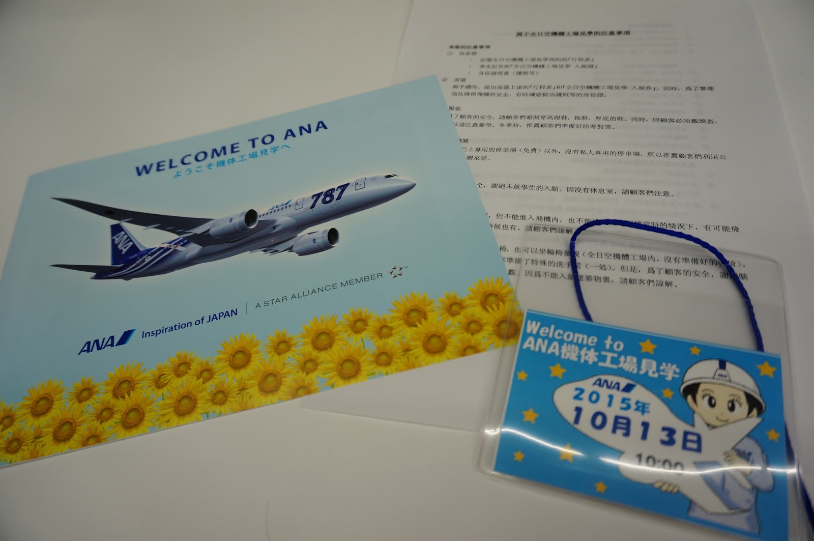 一直走差不多走到最盡,就會是見學集合地點的入口了,門口有保安叔叔,向他出示確認電郵方可以進入(所以記著要列印出來啊),進入大樓後到櫃檯進行登記手續即可,登記後會派一本小冊子,一張注意事項(有不同語言的),一張見學證,因為未到開始的時間,所以隨意在大堂休息或走走都可以,大堂有小賣店,有不少ANA的精品啊。