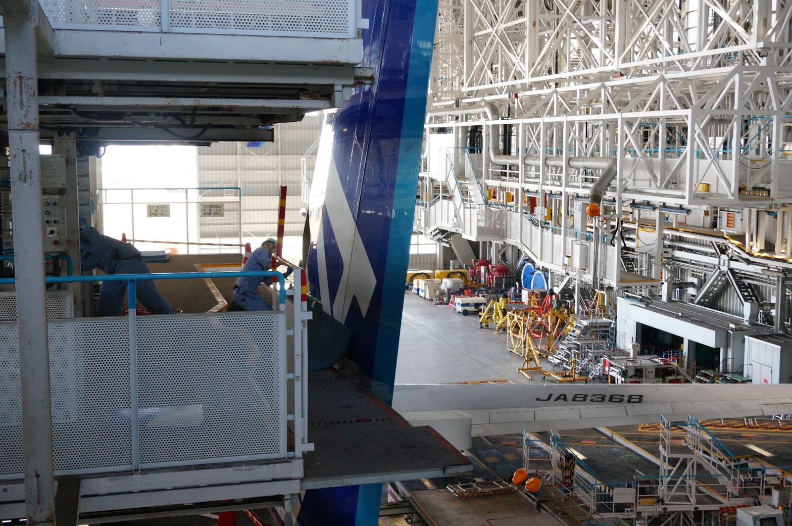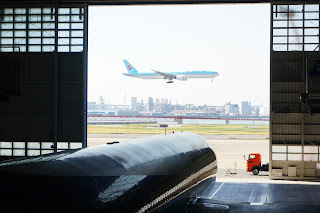 Checkout川崎hostel,提著行李前往羽田機場,從川崎到達羽田可乘京急線,而我今天要到的是新整備場站,先到天空橋站轉坐單軌列車前往,這個單軌列車真的幾有特色的啊,因為它有大大的展望窗,可盡覽羽田機場的景觀。如果要到新整備場的要留意啊,因為單軌列車有普通列車、區間快速和空港快速三種,只有每站皆停的普通列車才會停新整備場站啊!出了新整備場站,原來已經置身於機場後勤區域,左手面鐵欄內已經是機場滑行道範圍,不時見到有大型飛機緩緩滑行,真的令人覺得興奮,右邊則是JAL維修庫,如果是參加JAL的見學就是在這邊了,如果是像我要到ANA的呢,就要右轉後一直走和過橋了啊。